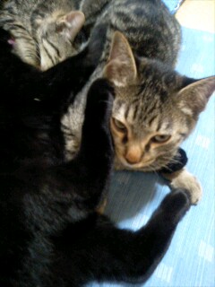 我が家のにゃんこを大公開♪ 黒猫の『夜』(♂)、シャム猫の『雨』(♂)、キジトラの双子『朔』(♂)と『蜜』(♀)。 4匹仲良く2DKのお家で暮らしてます(*´∀`*)